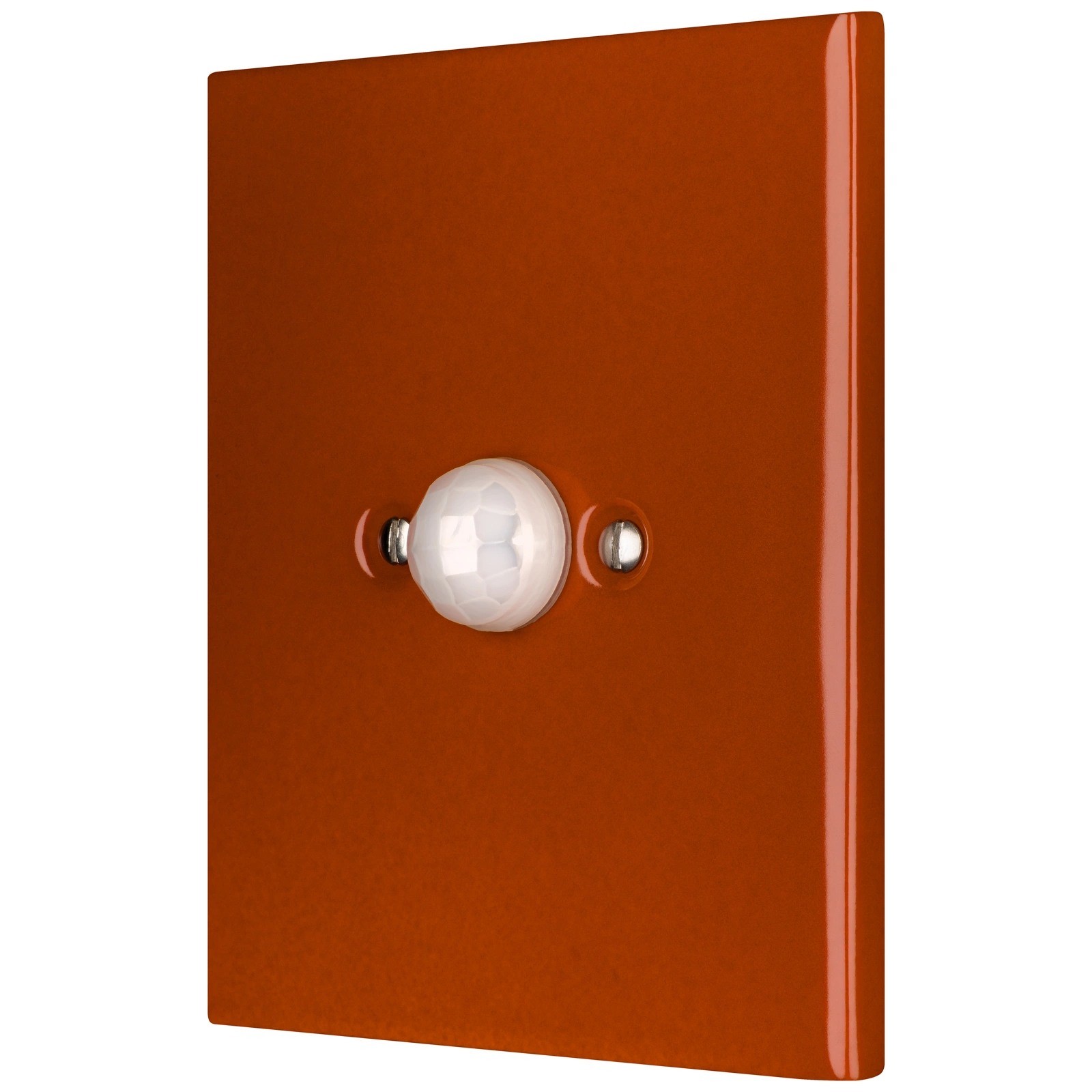 Senzor de mișcare modernă inspirată de design-ul retro. În culoarea roșu-maro. Cu suprafața smălţuită. Foarte rezistentă la frecare și praf. Produs din porțelan. Certificat de conformitate CE. Capac ornamental. 50 de ani de garanție!